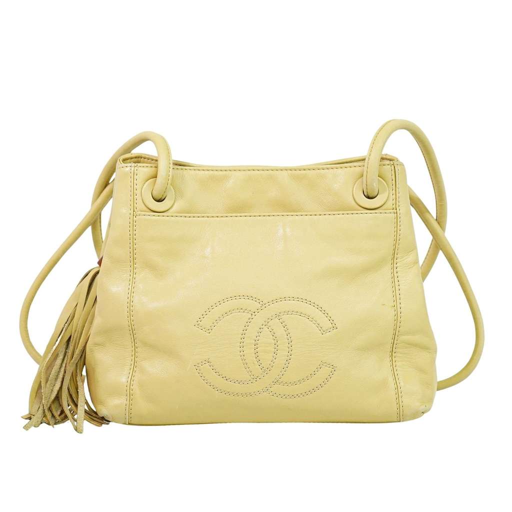 Chanel Vintage CC Tassel Shoulder Bag Beige Small Leather