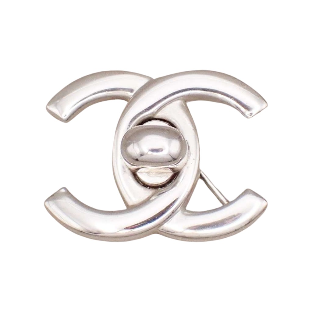 Chanel Vintage CC Turnlock Brooch Silver | Pre-Loved Luxury