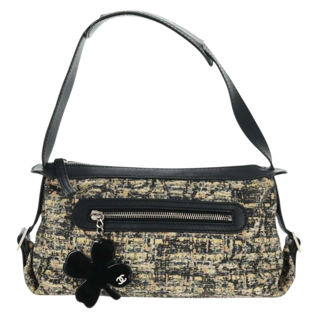 Chanel Vintage Clover Shoulder Bag Beige Medium Tweed