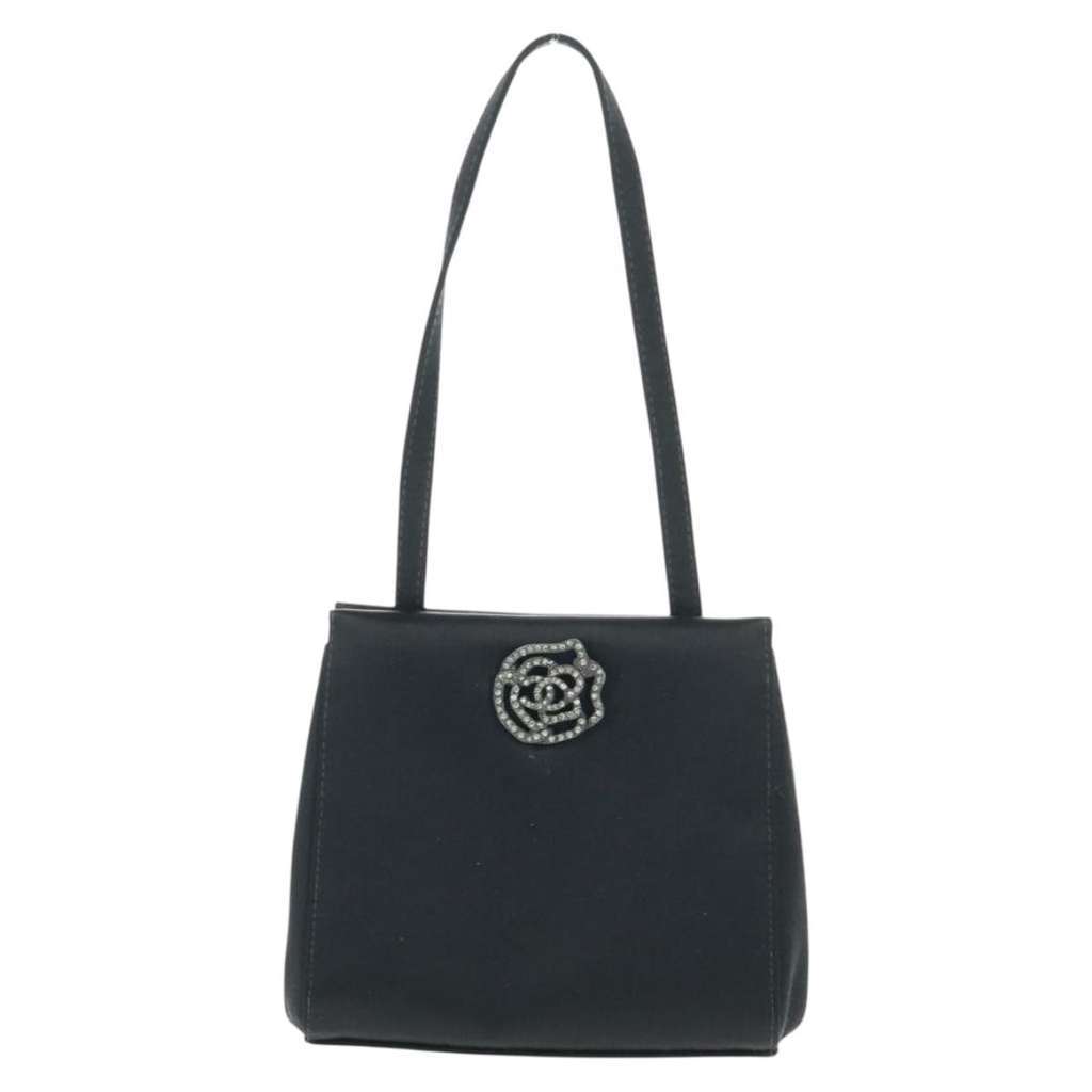 Chanel Vintage Crystal Camellia Evening Bag Black Mini Satin