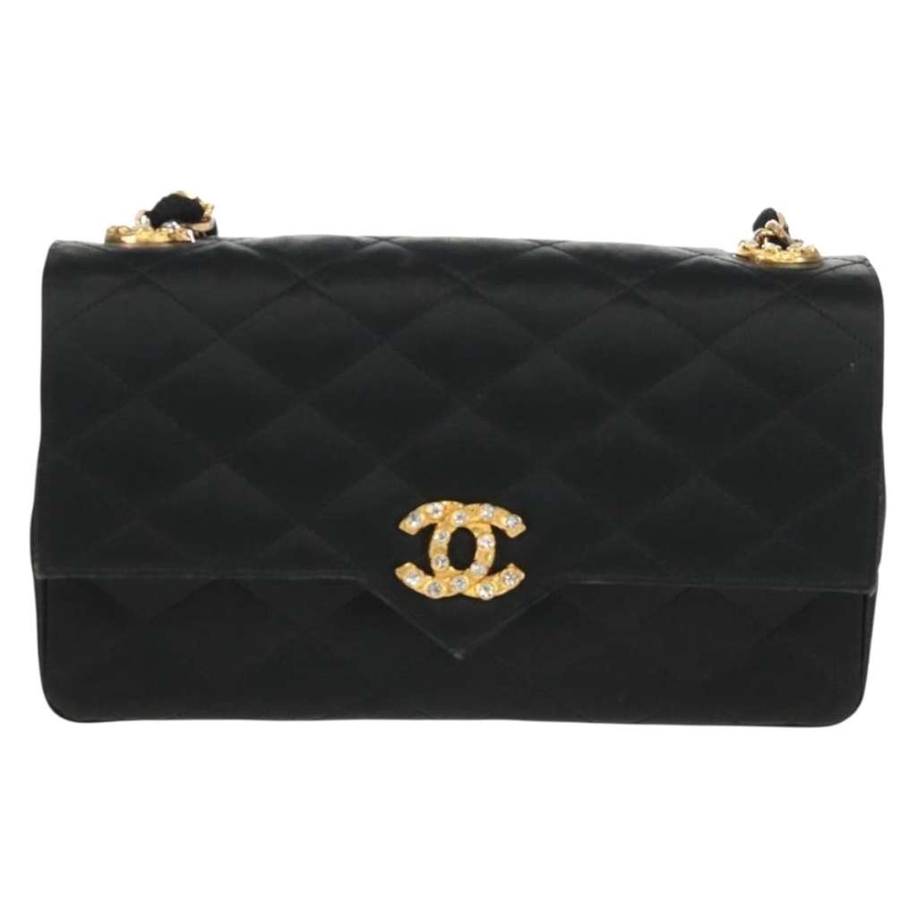Chanel Vintage Crystal CC Flap Bag Black Small Satin