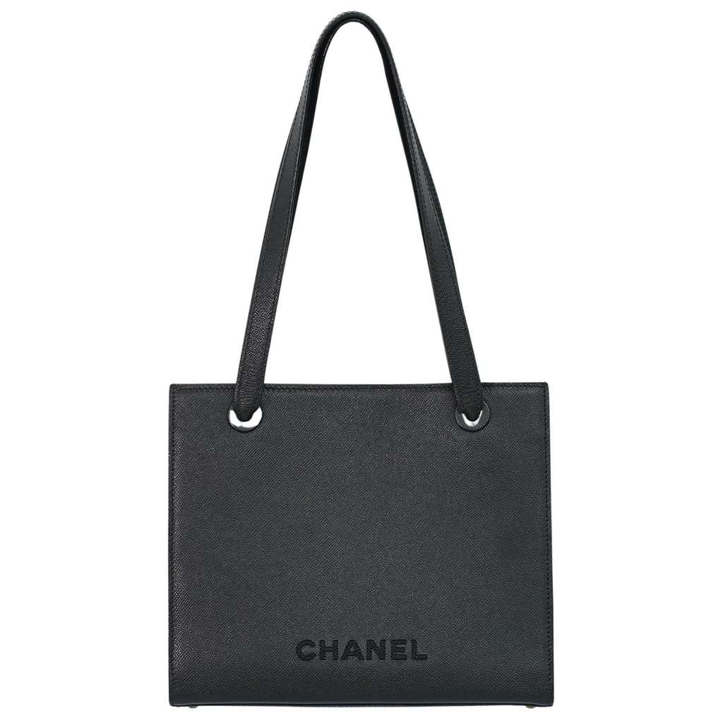 Chanel Vintage Logo Tote Black Medium Leather | Pre-Loved Lu