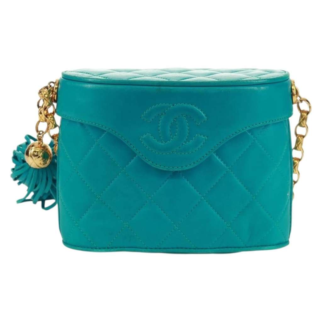 Chanel Vintage Tassel Box Bag Turquoise Mini Leather