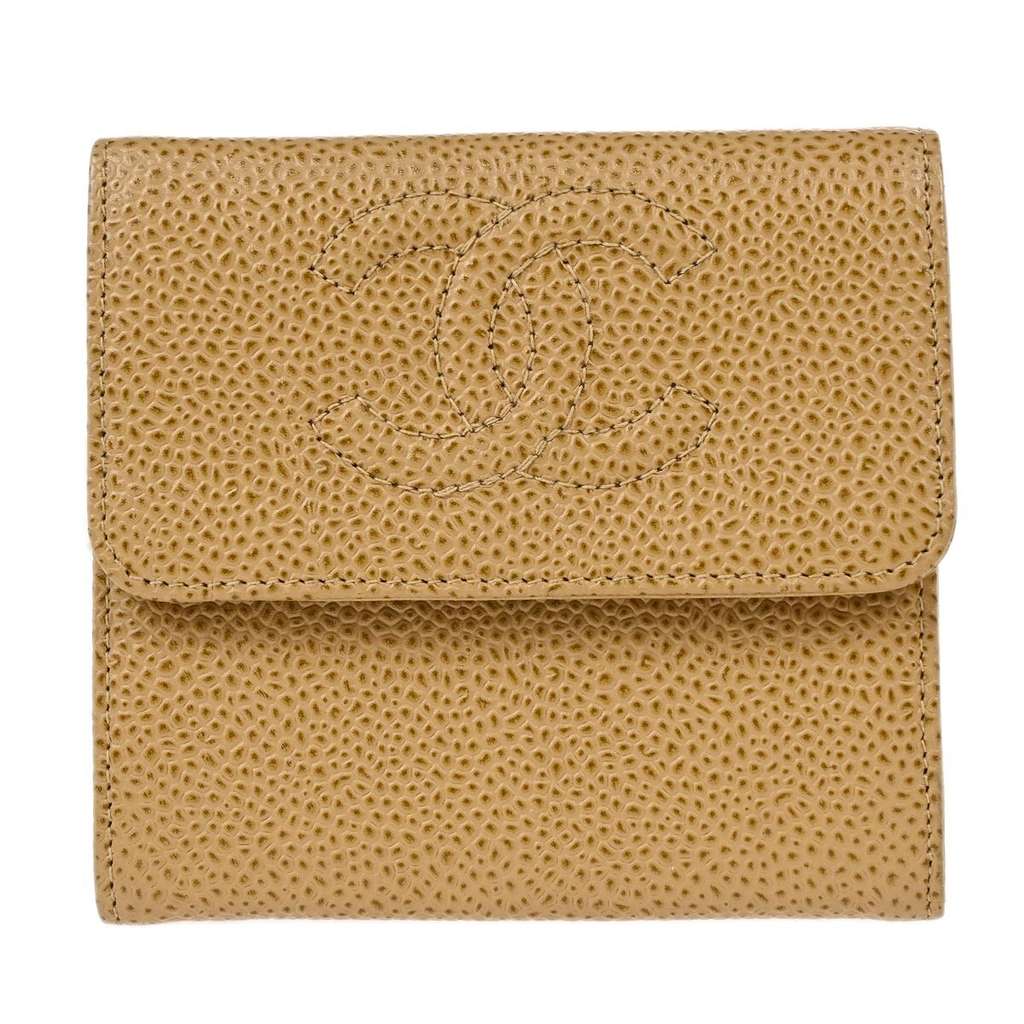 Chanel Vintage Timeless CC Bifold Wallet Beige Mini Leather