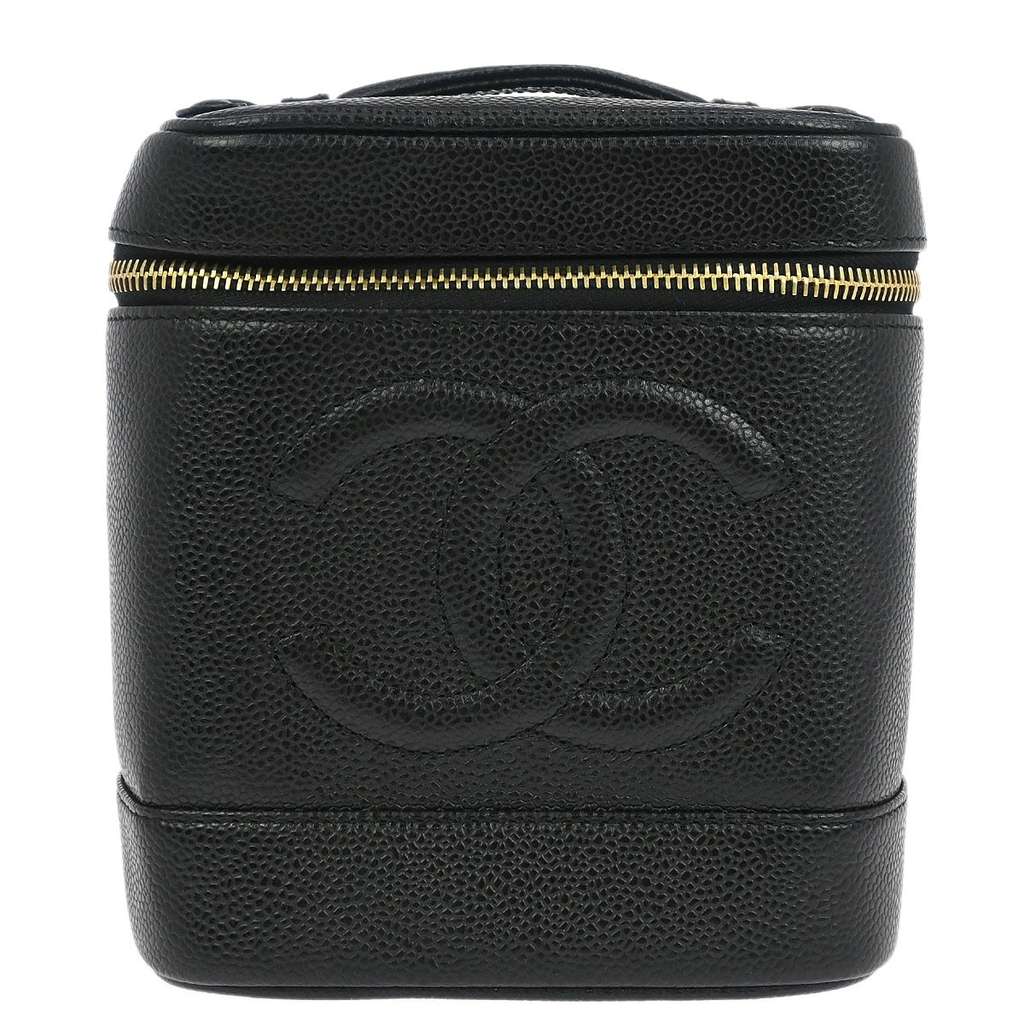 Chanel Vintage Timeless Cosmetic Case Black Mini Leather