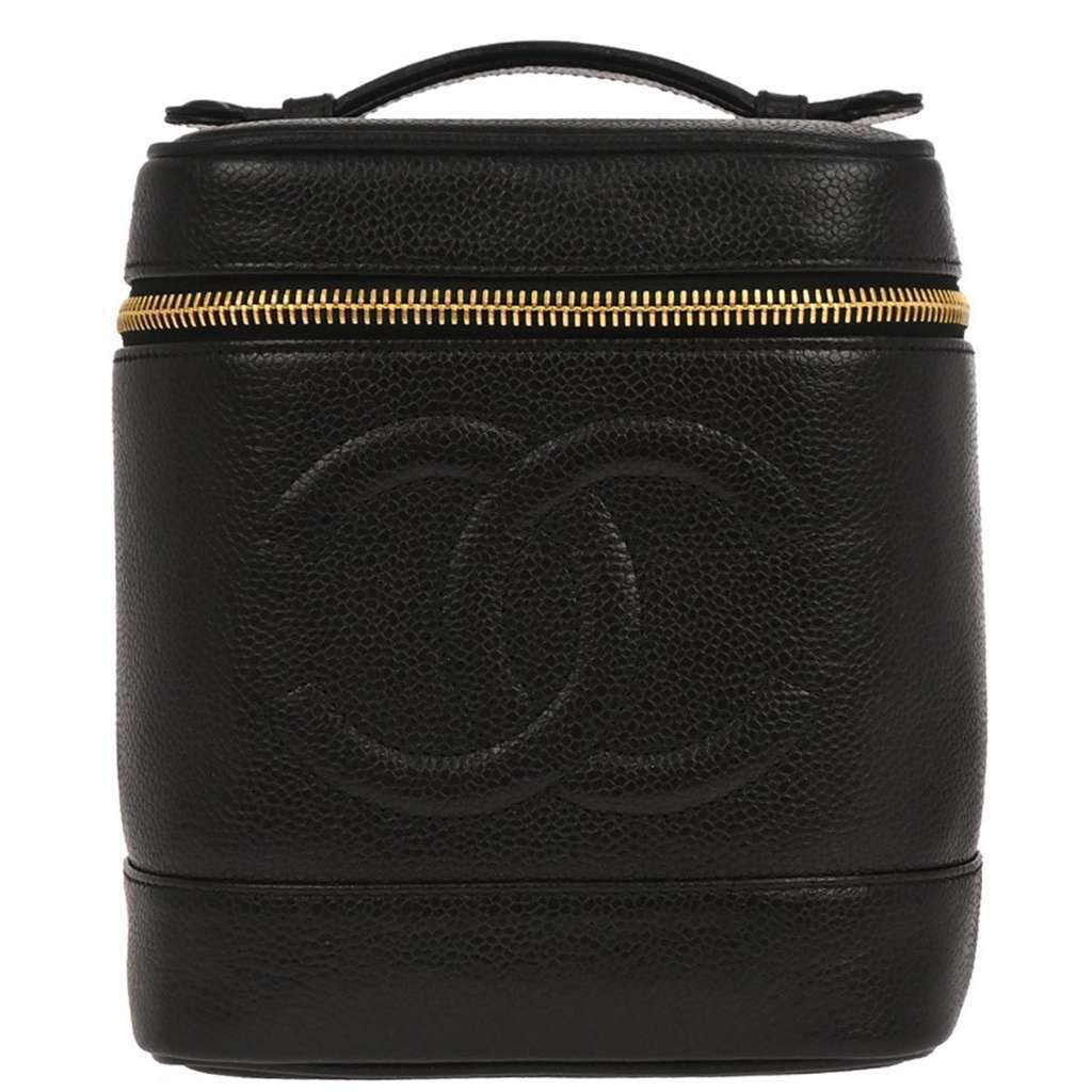 Chanel Vintage Timeless Cosmetic Case Black Mini Leather