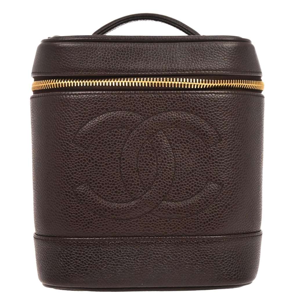 Chanel Vintage Timeless Cosmetic Case Brown Mini Leather