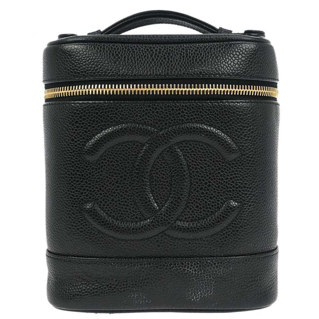 Chanel Vintage Timeless Cosmetic Case Black Mini Leather