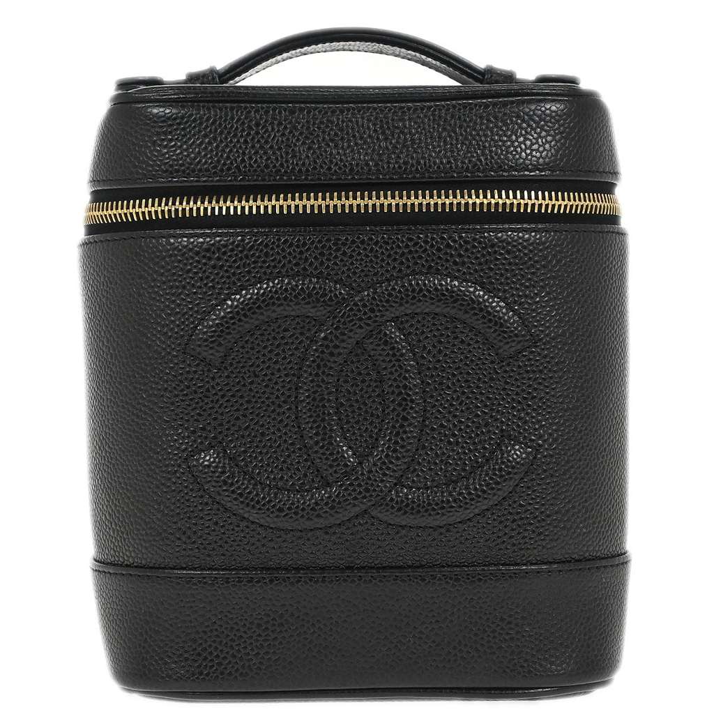 Chanel Vintage Timeless Cosmetic Case Black Mini Leather