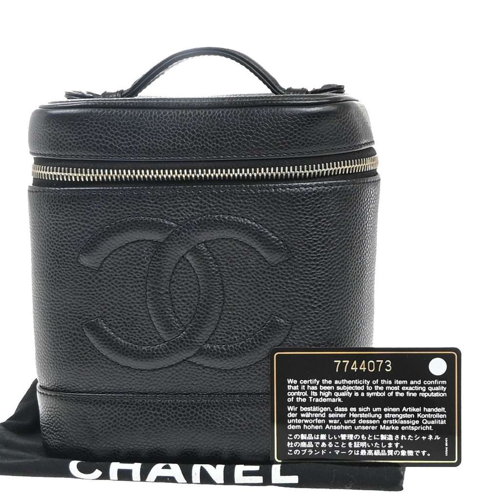 Chanel Vintage Timeless Cosmetic Case Black Mini Leather