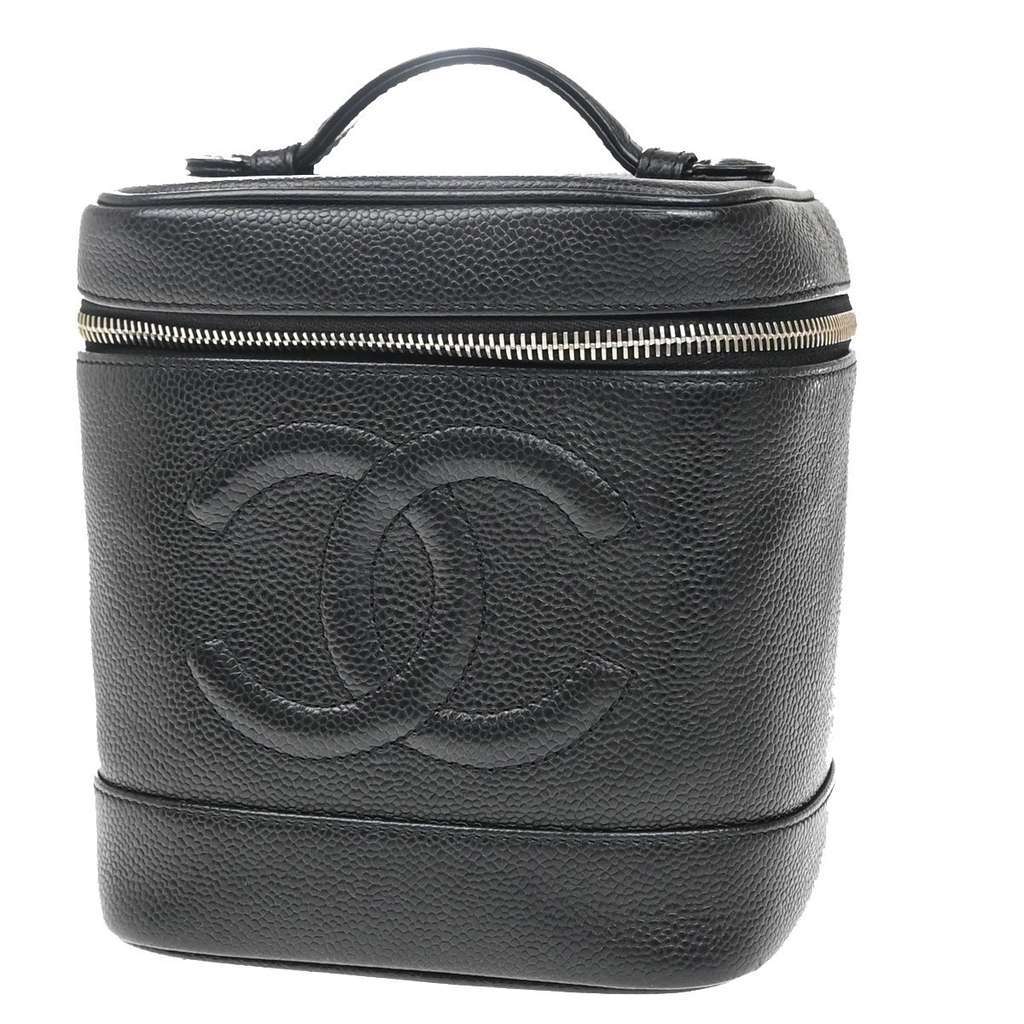 Chanel Vintage Timeless Cosmetic Case Black Mini Leather