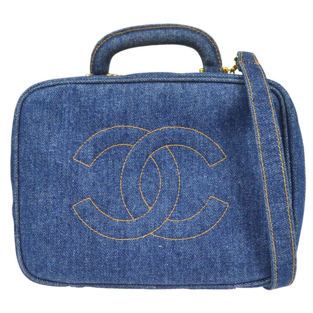 Chanel Vintage Timeless Zip Around Vanity Case Blue Small