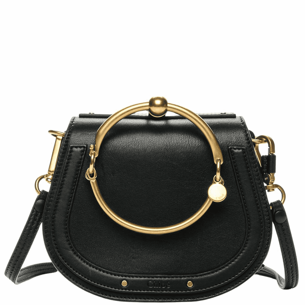 Black leather adjustable strap/ Magnetic fastener/ One patch pocket at the back/ Lining in beige suede, one patch pocket. Sold with dustbag.