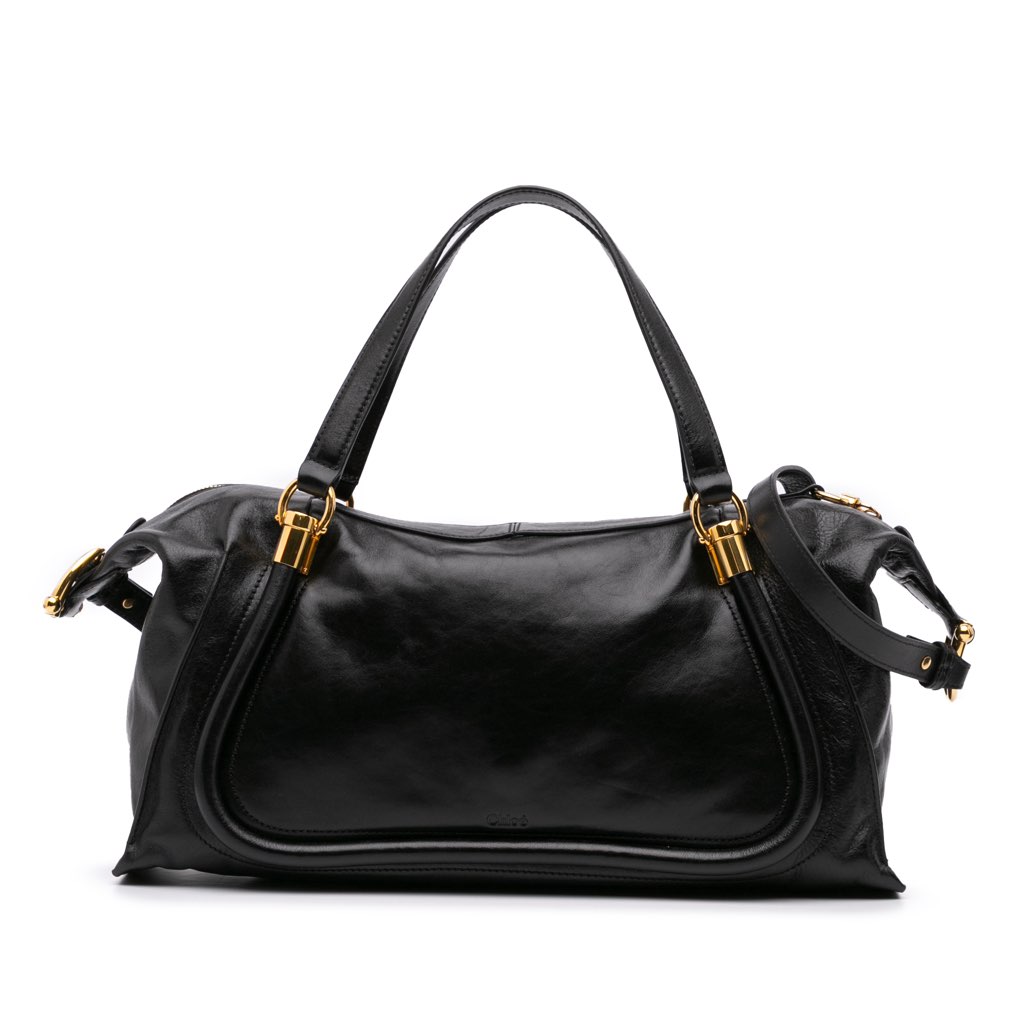 The Paraty 24 features a leather body, flat leather handles, an adjustable and detachable flat leather strap, a top zip closure, and an interior slip pocket.