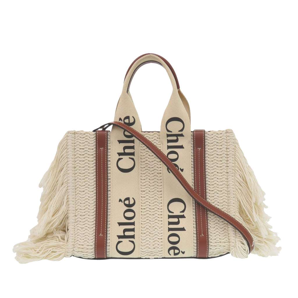 Chloé Small Linen Woody Fringe Tote Brown Medium | Pre-Loved