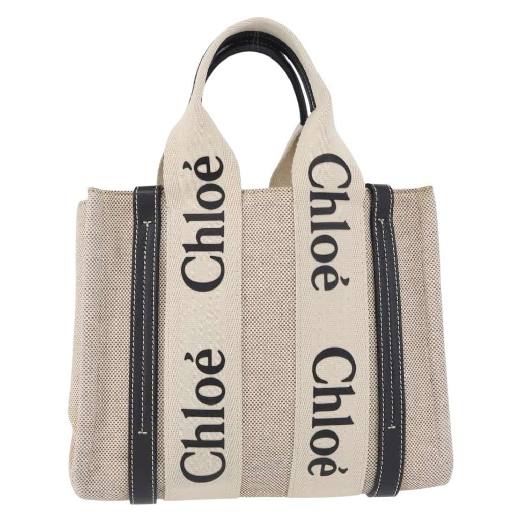 Chloe Woody Convertible Tote Beige Medium Canvas | Pre-Loved
