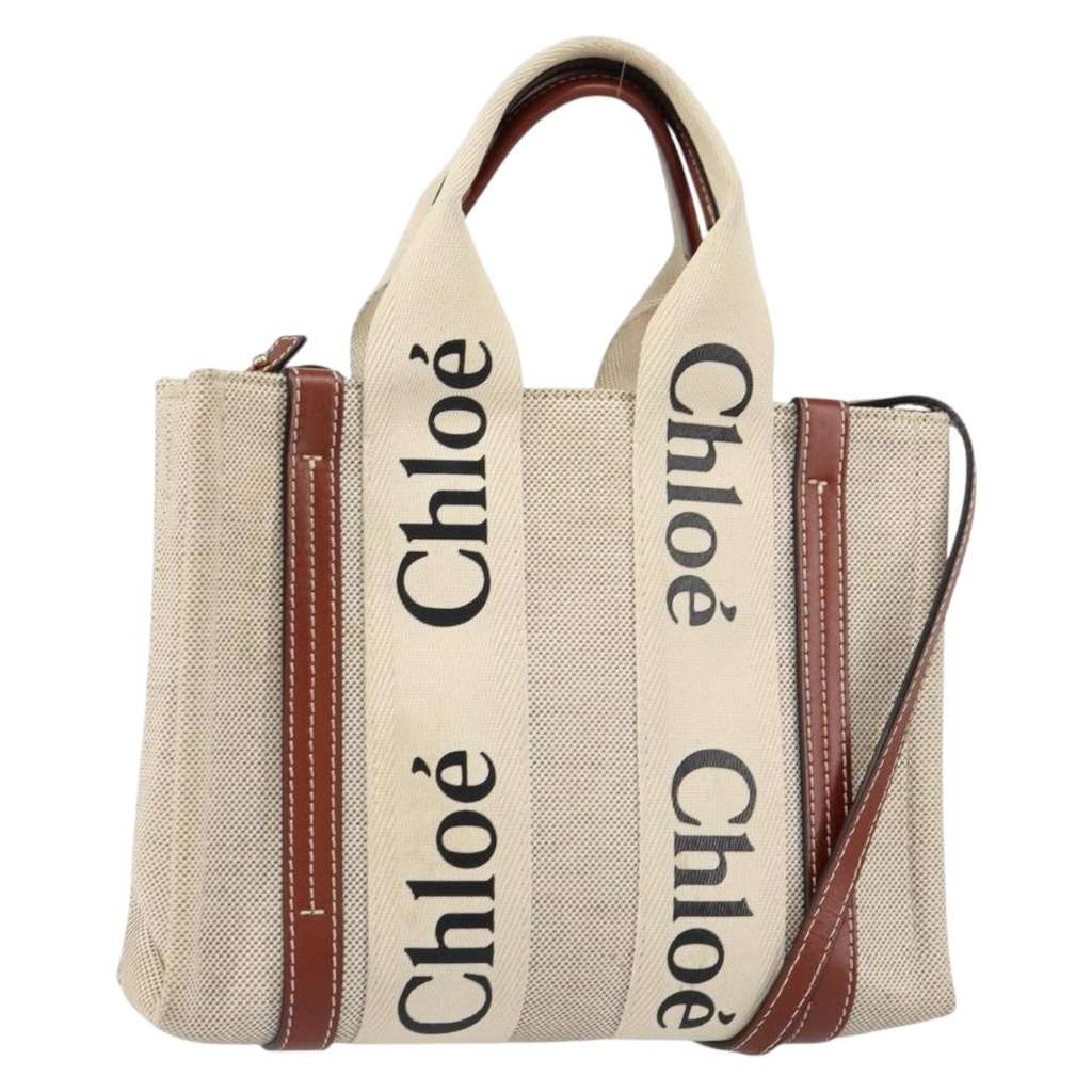 Chloe Woody Convertible Tote Beige Medium Canvas | Pre-Loved
