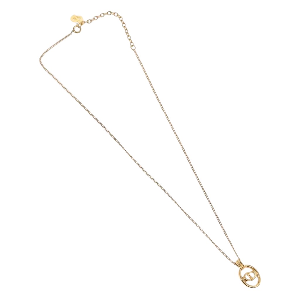 Christian Dior CD Round Pendant Necklace Gold Metal