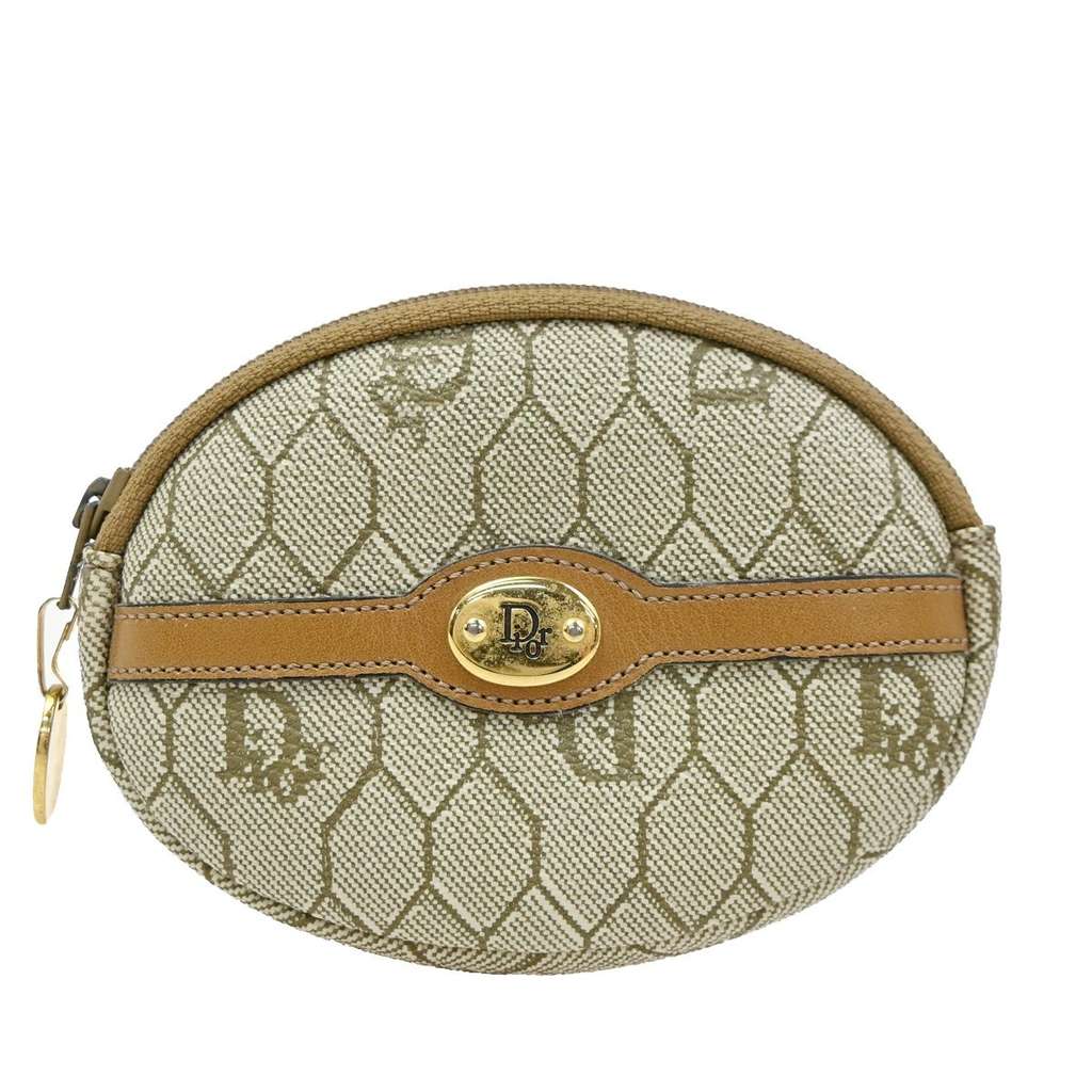 Christian Dior Honeycomb Zip Coin Purse Beige Mini Canvas