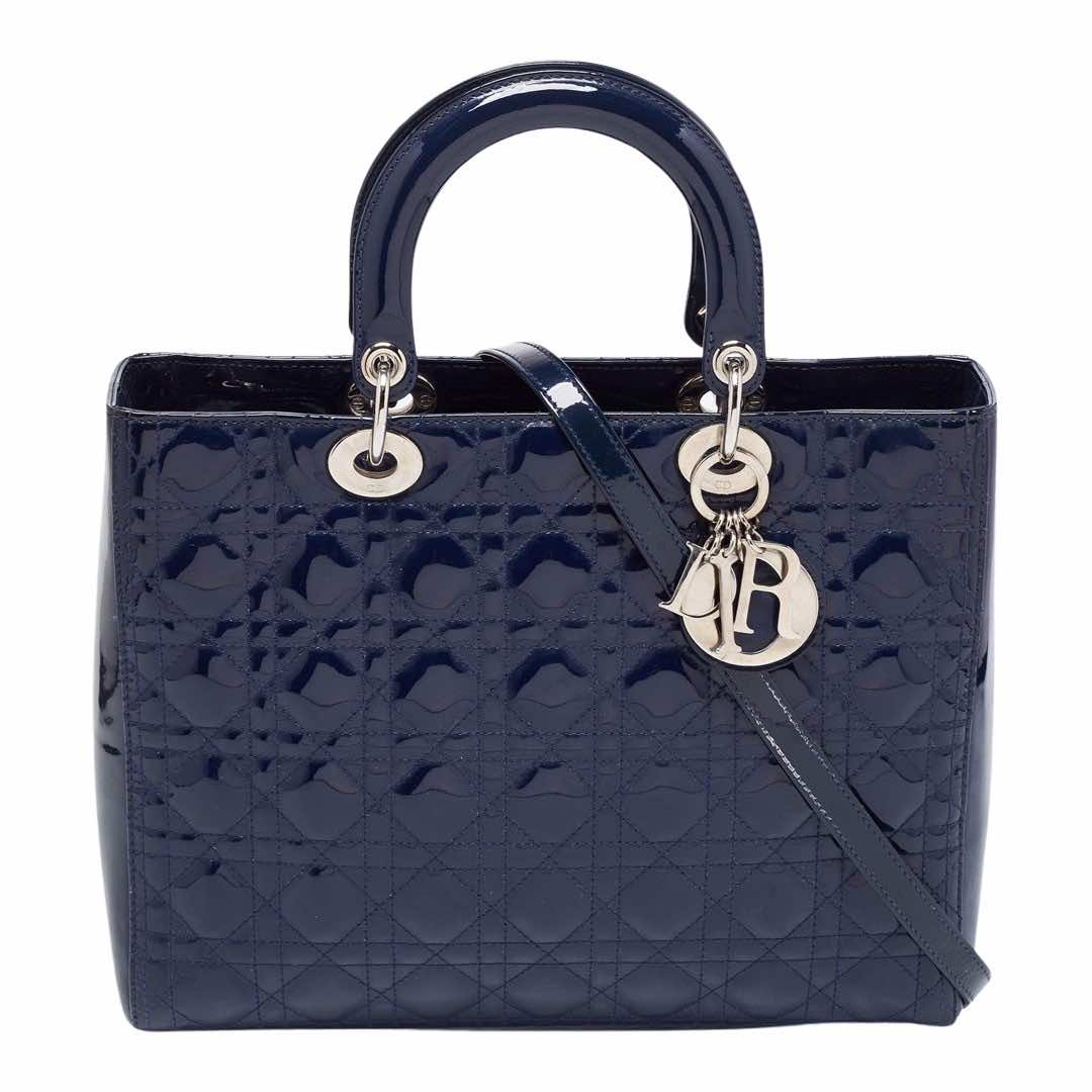 Patent Sapphire cannage Lady Dior with top handles and strap