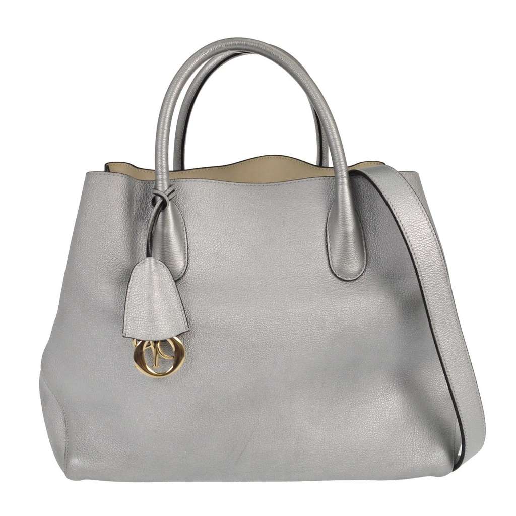 Christian Dior Open Bar Bag Silver Large Leather | Pre-Loved