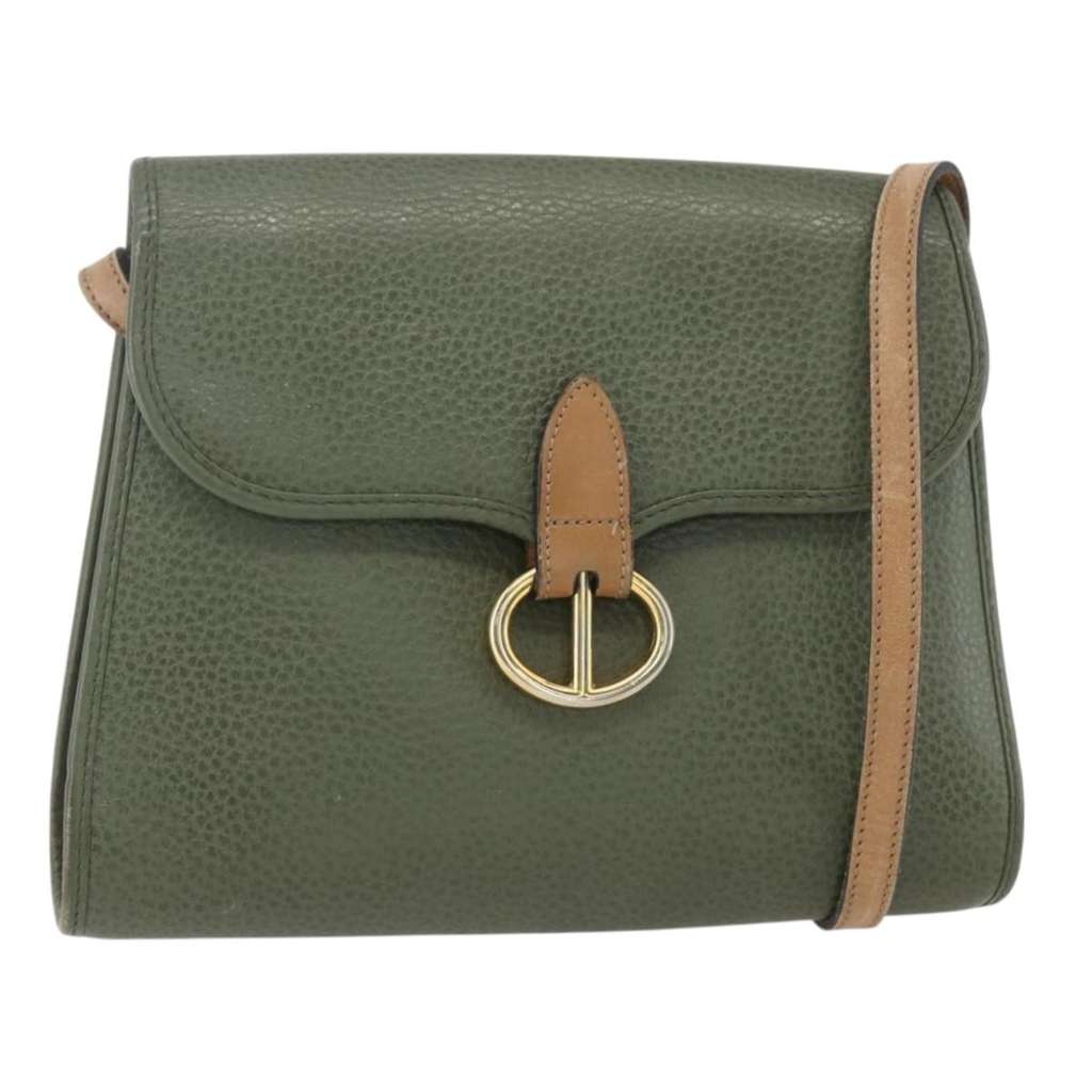 Christian Dior Vintage CD Flap Shoulder Bag Khaki Small Leat