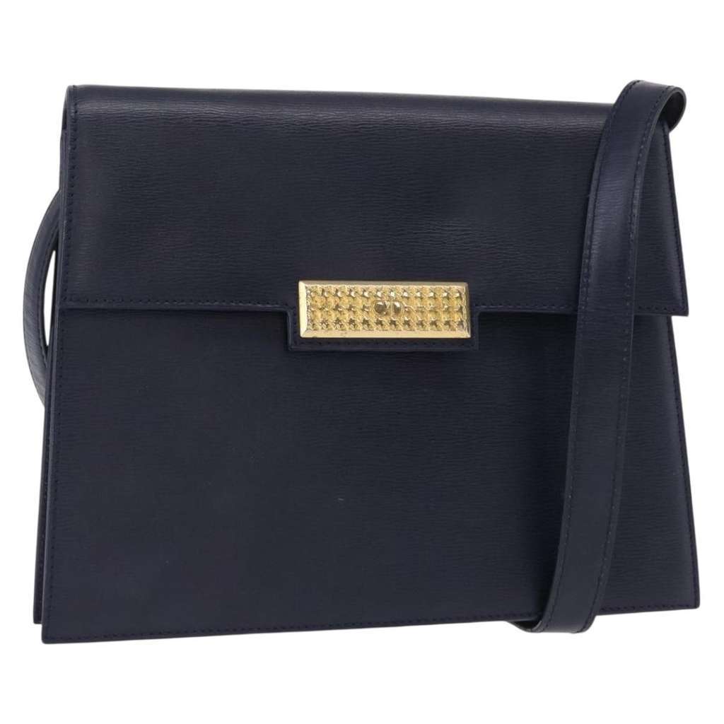 Christian Dior Vintage CD Flap Shoulder Bag Navy Small Leath