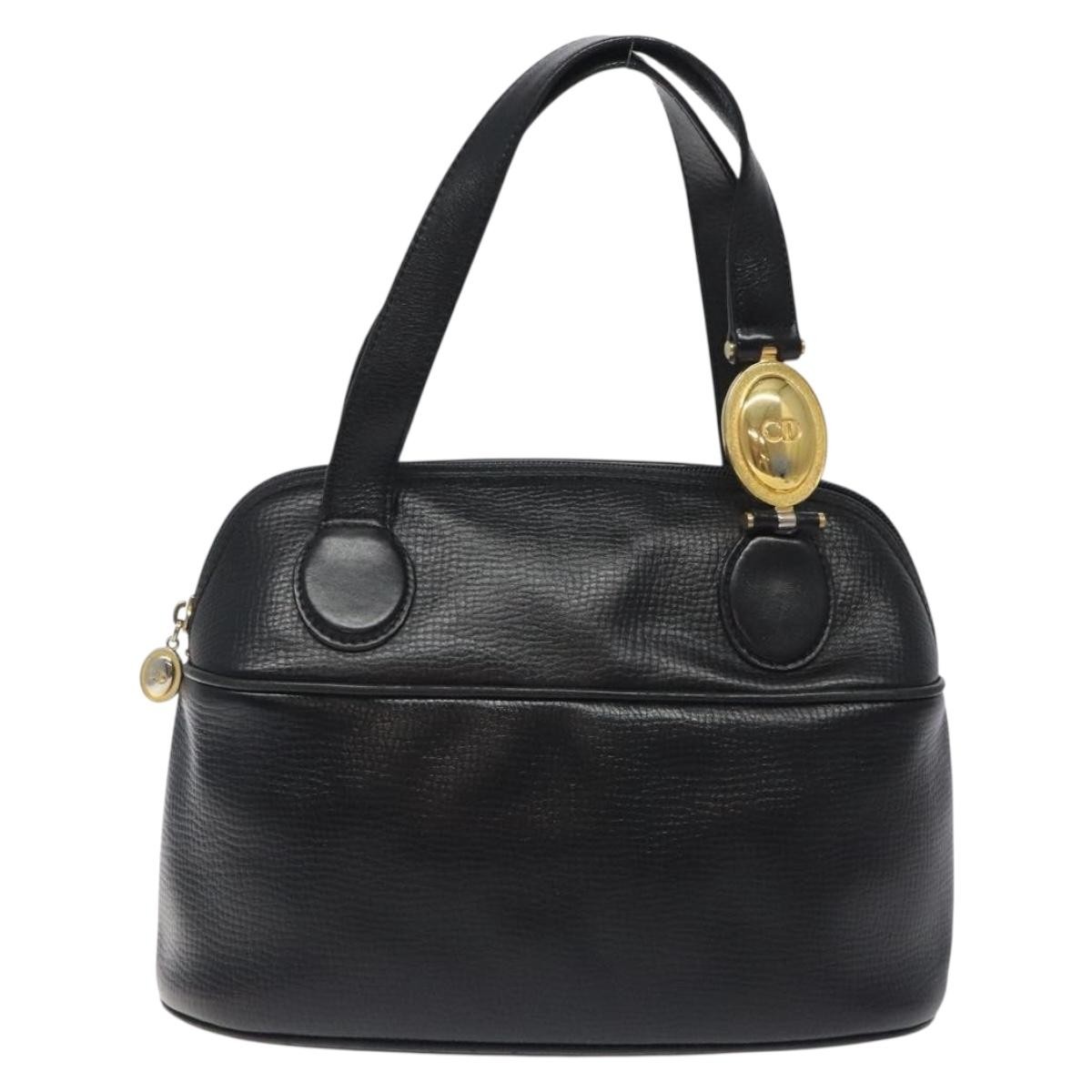 Christian Dior Vintage CD Handbag Black Medium Leather