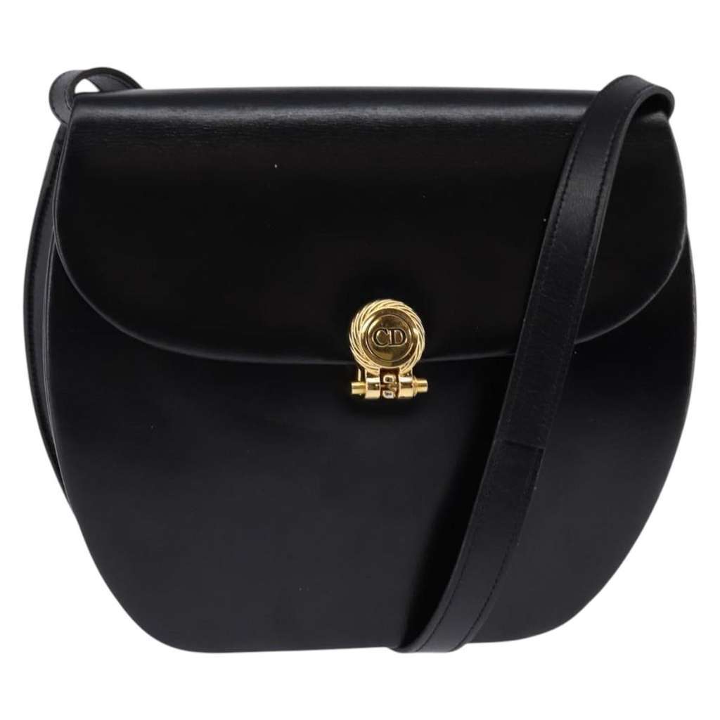 Christian Dior Vintage CD Logo Shoulder Bag Black Small Leat