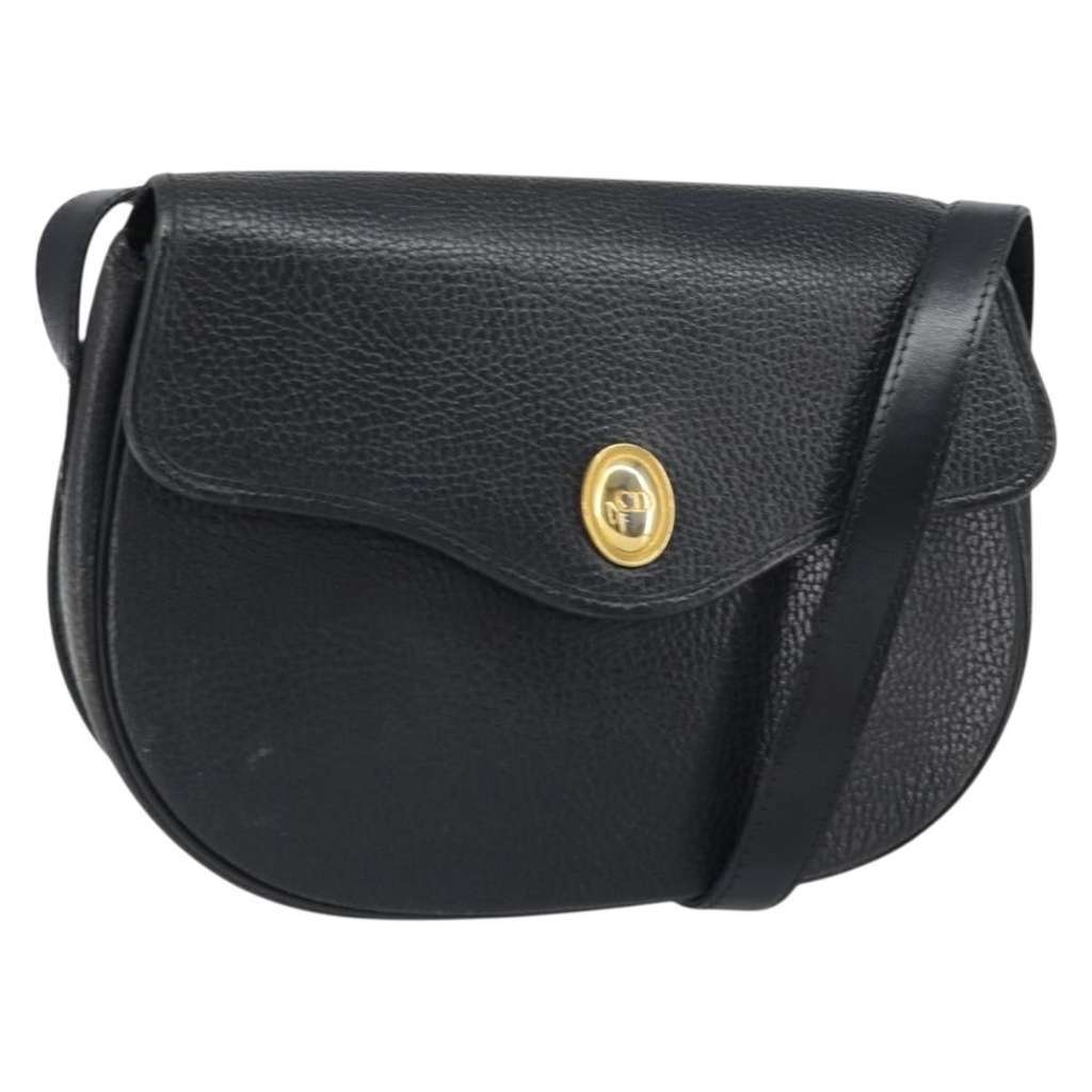 Christian Dior Vintage CD Logo Shoulder Bag Black Small Leat