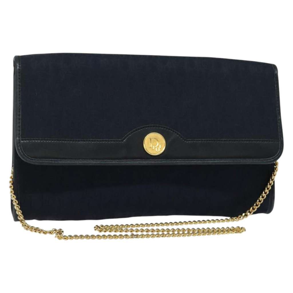 Christian Dior Vintage Chain Flap Shoulder Bag Navy Medium C