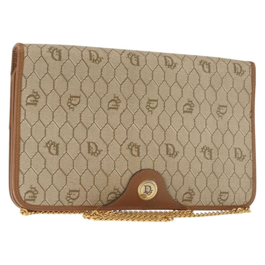 Christian Dior Vintage Honeycomb chain Beige Medium Canvas