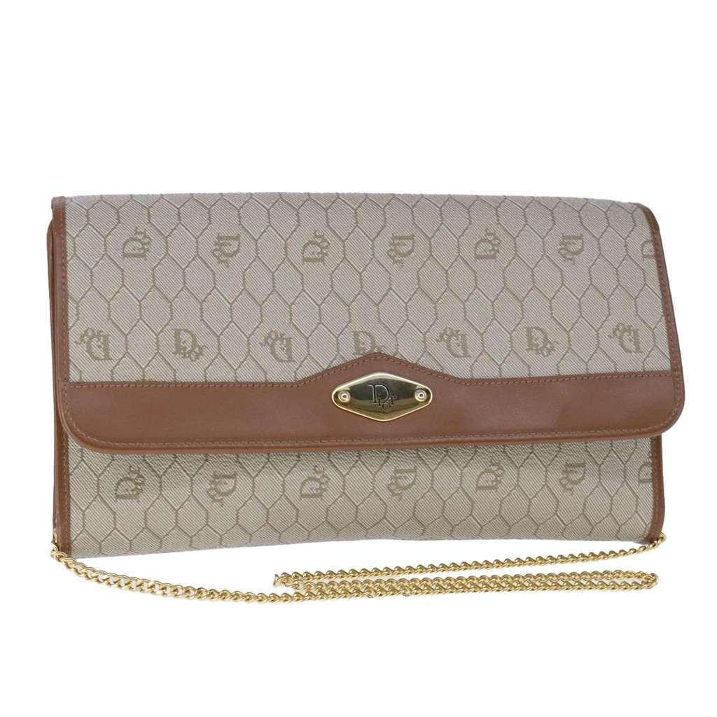 Christian Dior Vintage Honeycomb chain Beige Medium Canvas