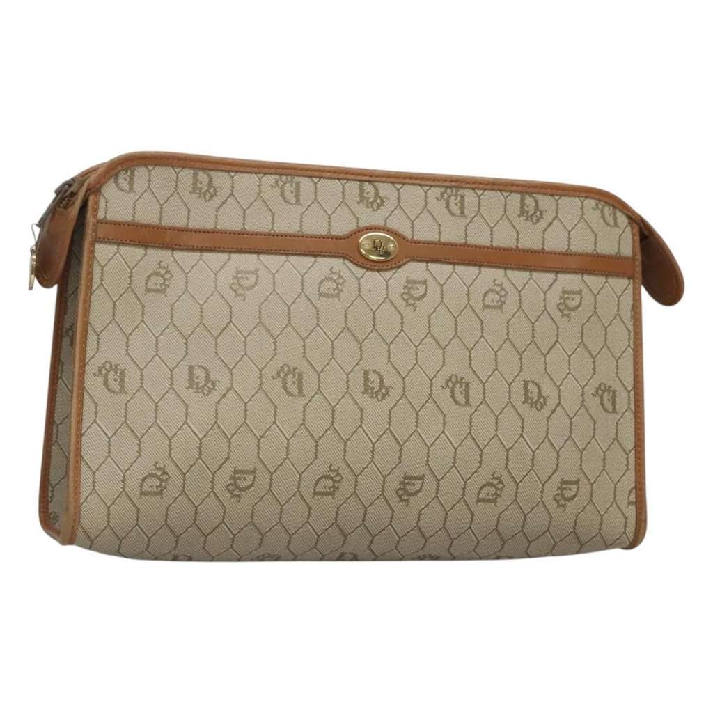 Christian Dior Vintage Honeycomb Zip Pouch Beige Medium