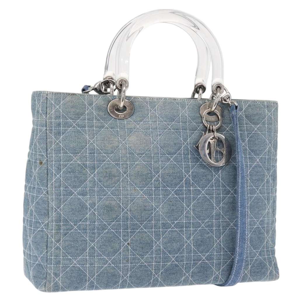 Christian Dior Vintage Lady Dior Bag Blue Large Canvas