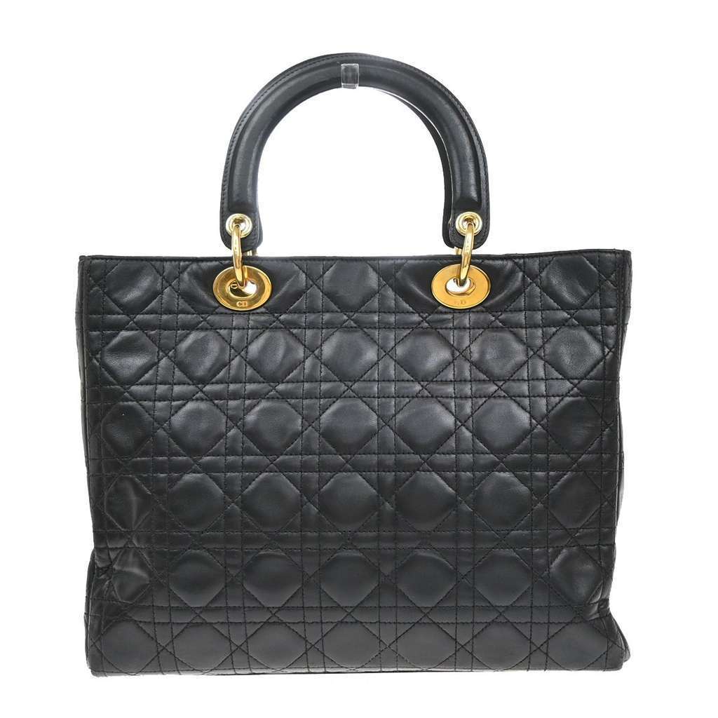 Christian Dior Vintage Lady Dior Bag Black Large Leather