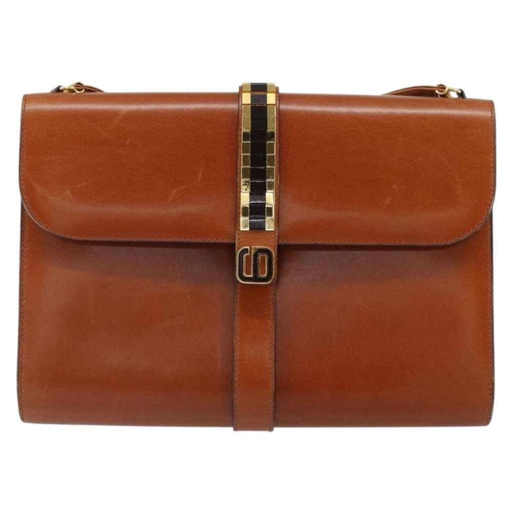 Christian Dior Vintage Shoulder Bag Brown Small Leather