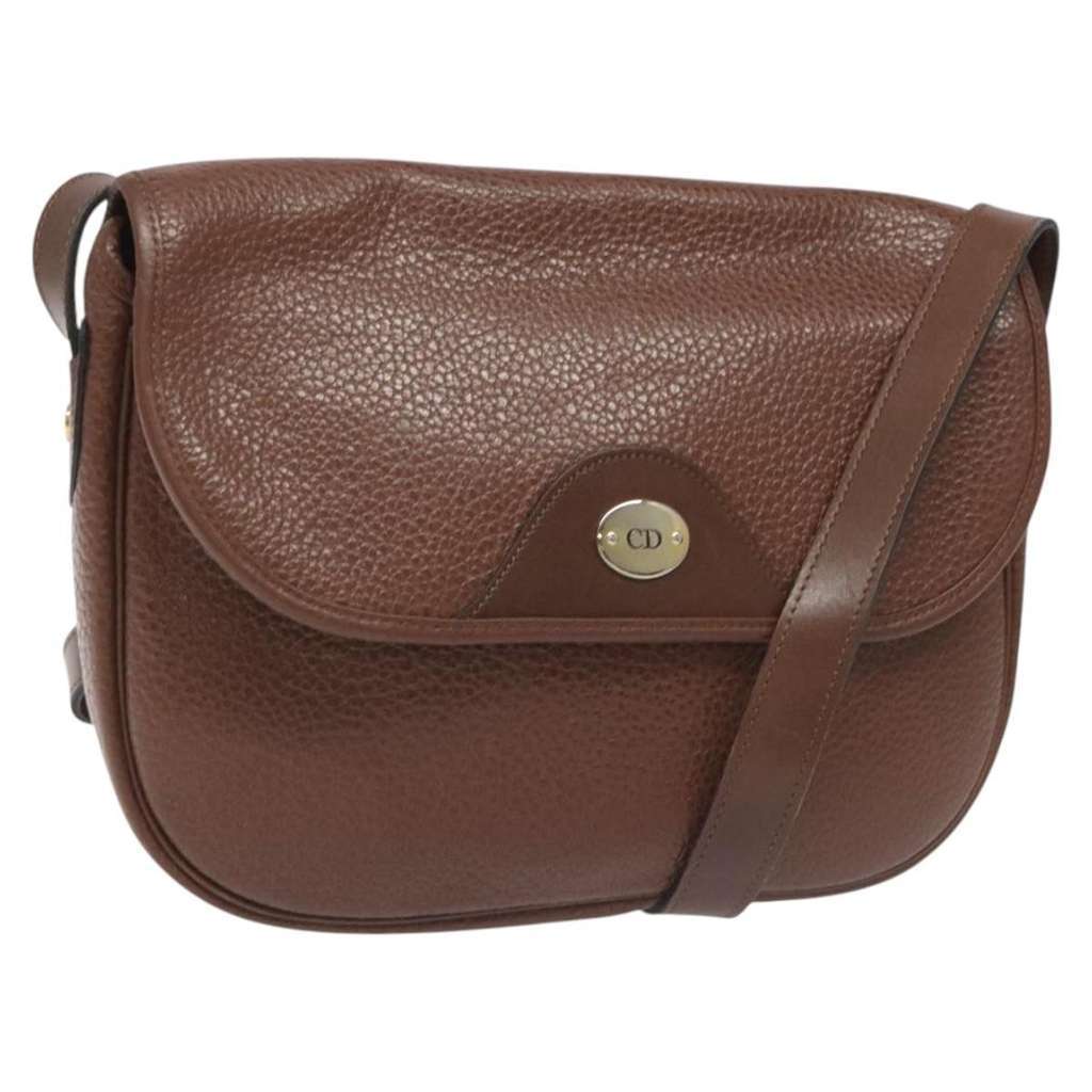Christian Dior Vintage Shoulder Bag Brown Small Leather