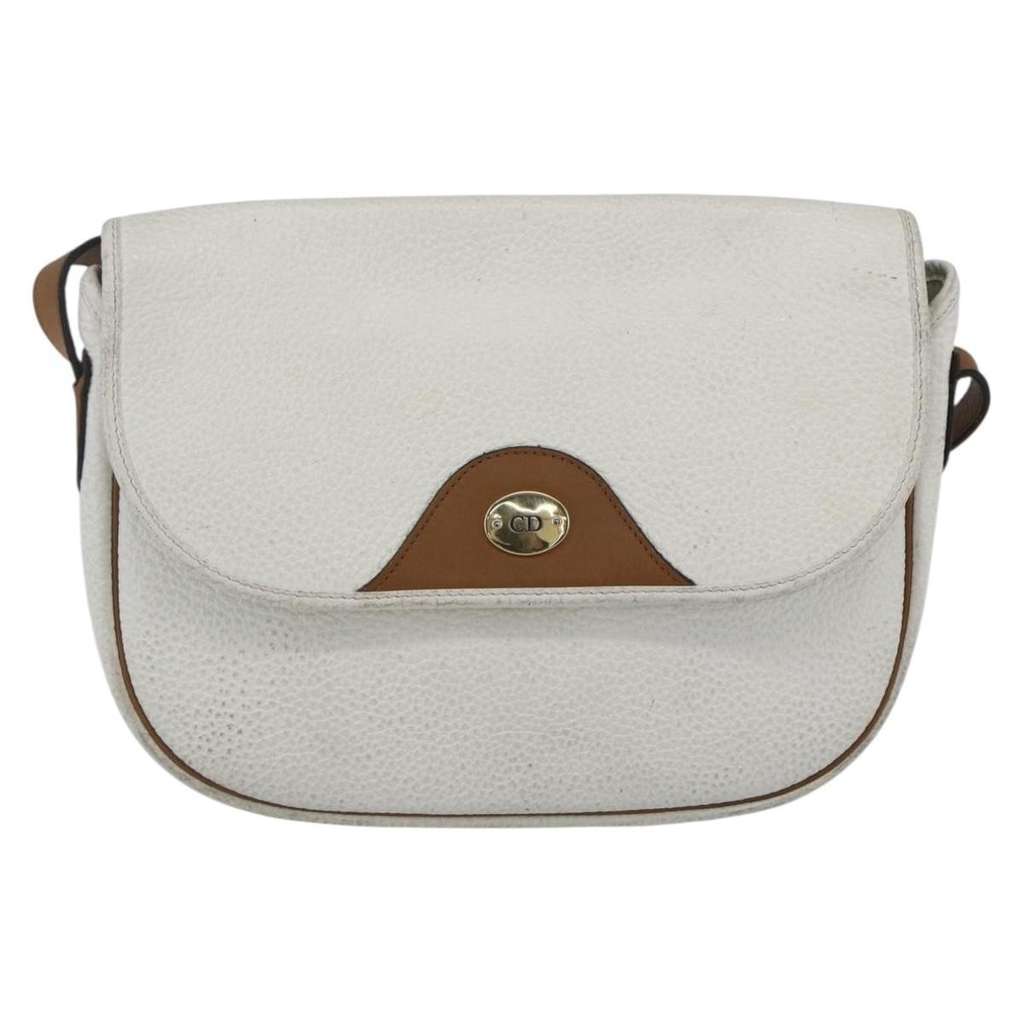 Christian Dior Vintage Shoulder Bag White Small Leather