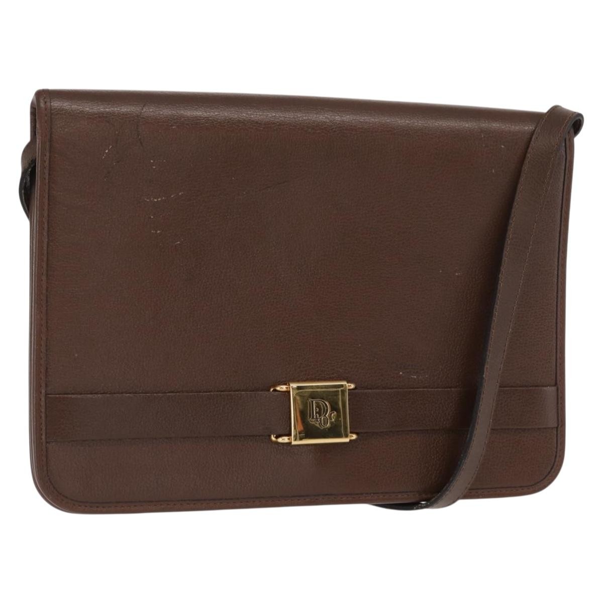 Christian Dior Vintage Shoulder Bag Brown Small Leather