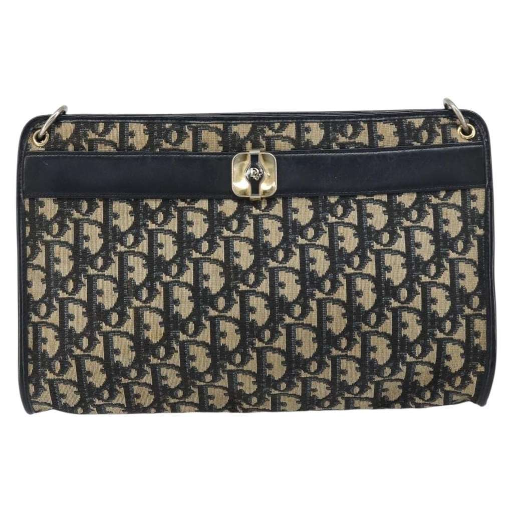 Christian Dior Vintage Trotter Shoulder Bag Navy Medium Canv