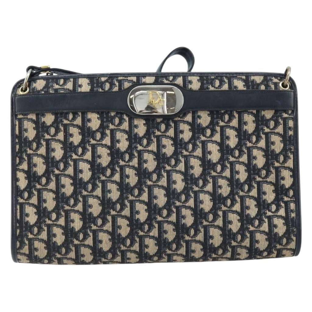 Christian Dior Vintage Trotter Shoulder Bag Navy Medium Canv