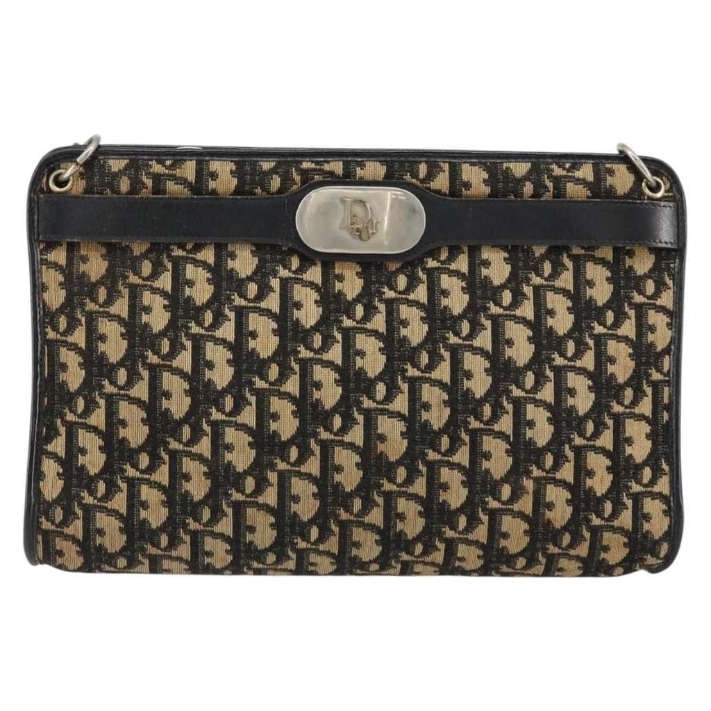 Christian Dior Vintage Trotter Shoulder Bag Navy Medium Canv