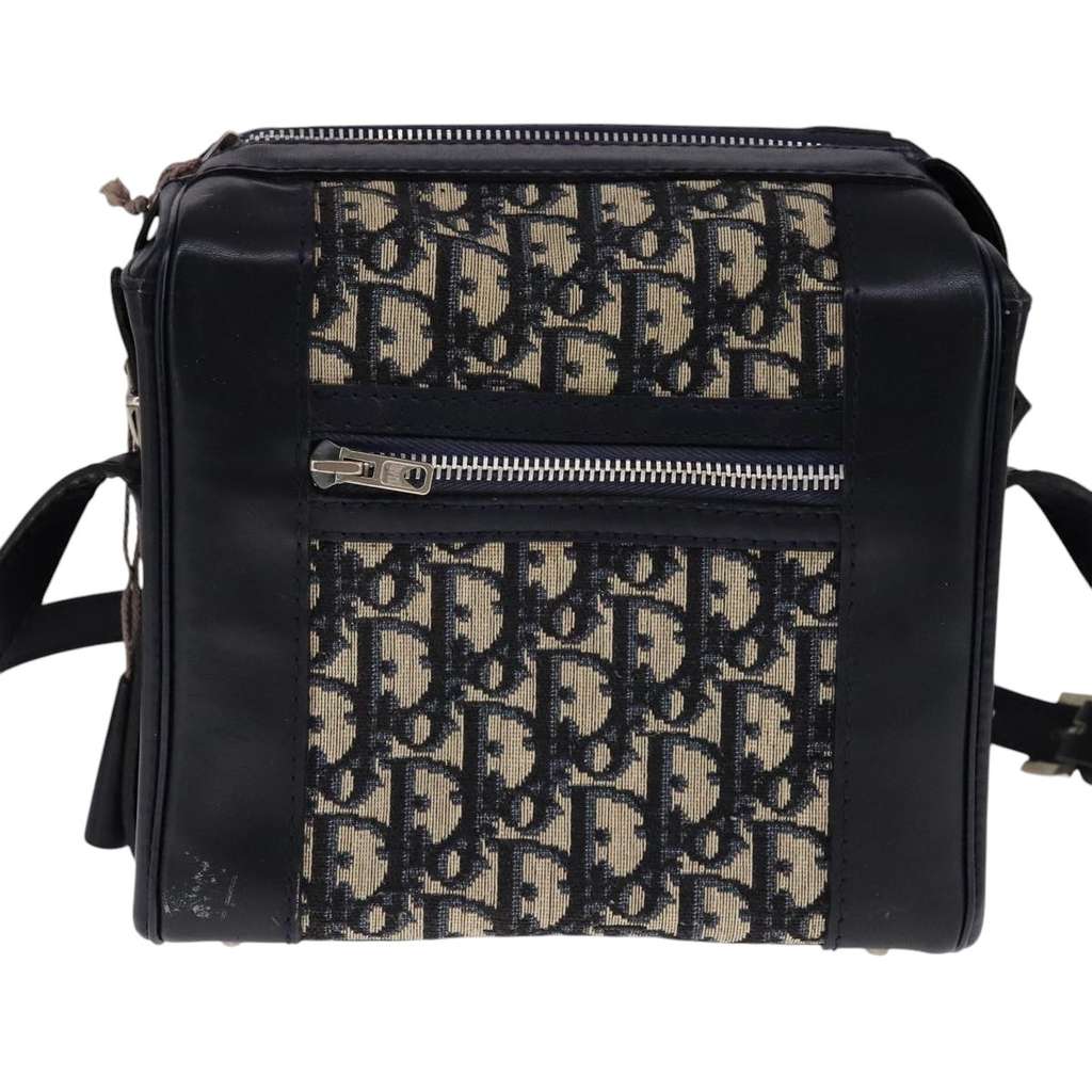 Christian Dior Vintage Zip Shoulder Bag Navy Small Canvas