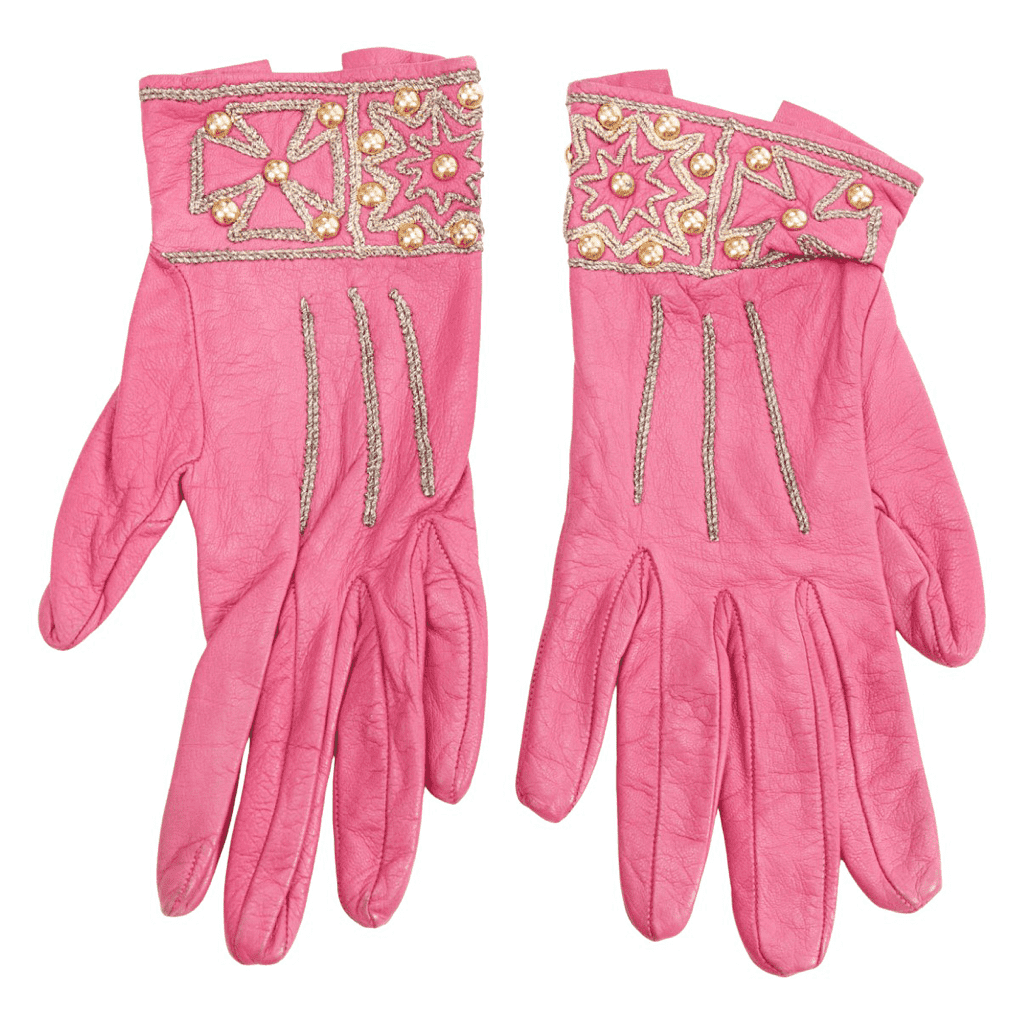 CHRISTIAN LACROIX Vintage pink leather gold stud embroidery short gloves Sz6.5