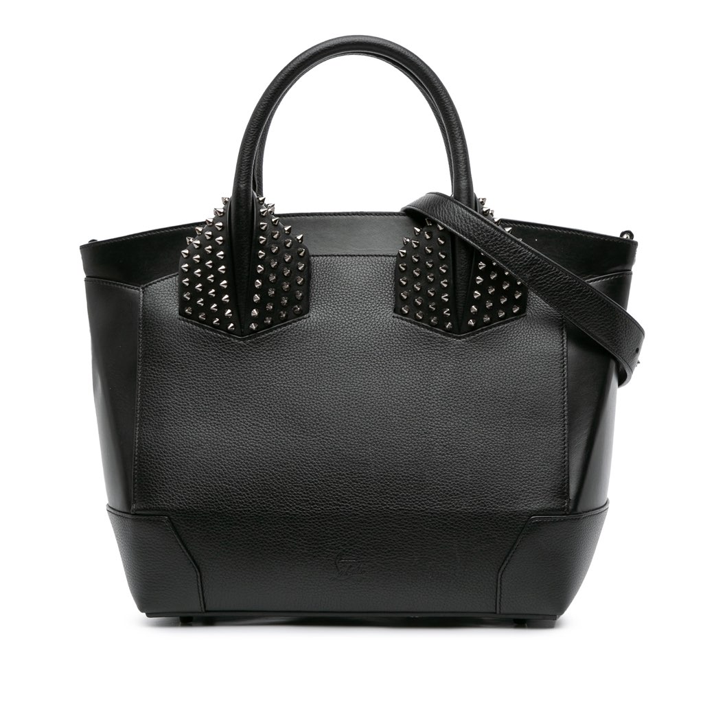 The Eloise features a studded leather body, rolled leather handles, a detachable studded leather shoulder strap, a top zip closure, exterior slip pockets, and interior slip pockets.