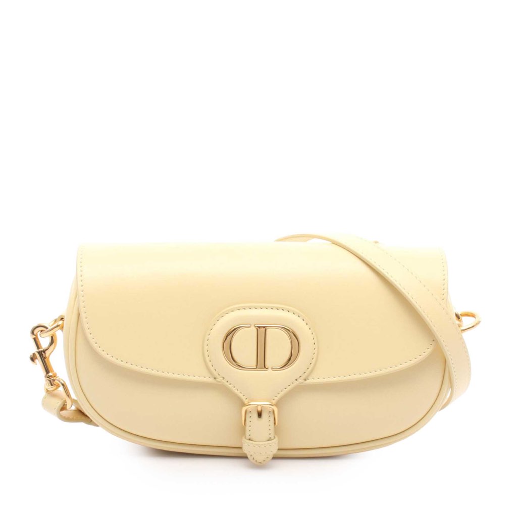 The Bobby East West crossbody bag features a leather body, a flat and adjustable leather shoulder strap, a front flap with buckle closure, and an interior slip pocket.