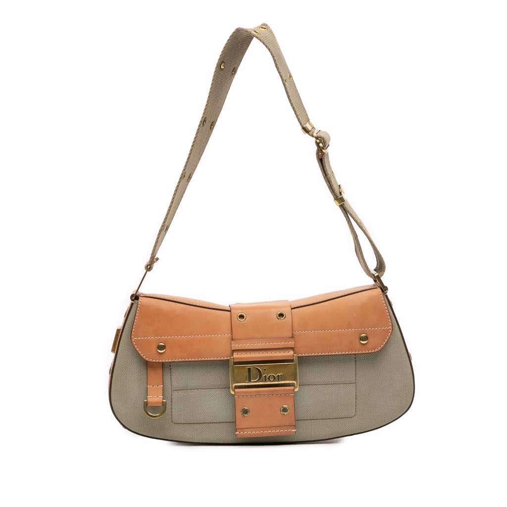 The Street Chic Columbus Bag features a canvas and leather body, an adjustable strap, a front flap with snap closure, and an interior zip pocket.