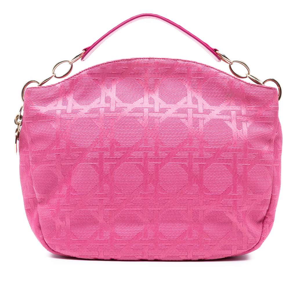 This hobo features a canvas body, a flat leather strap, an open top with a magnetic closure, and interior zip and slip pockets. Strap has been repainted.