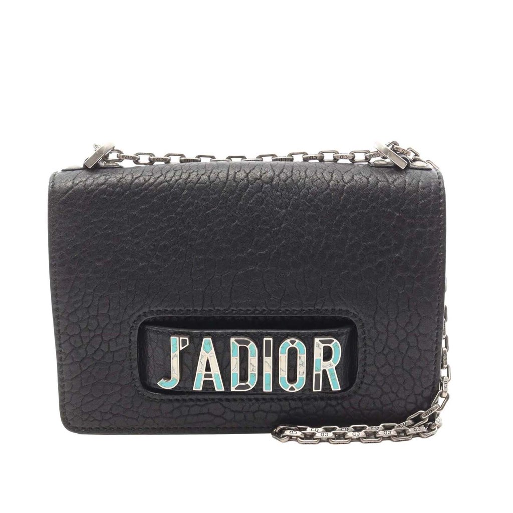 The JAdior Chain Flap features a leather body, a silver tone chain strap, a front flap with a magnetic snap button closure, and interior slip pockets.